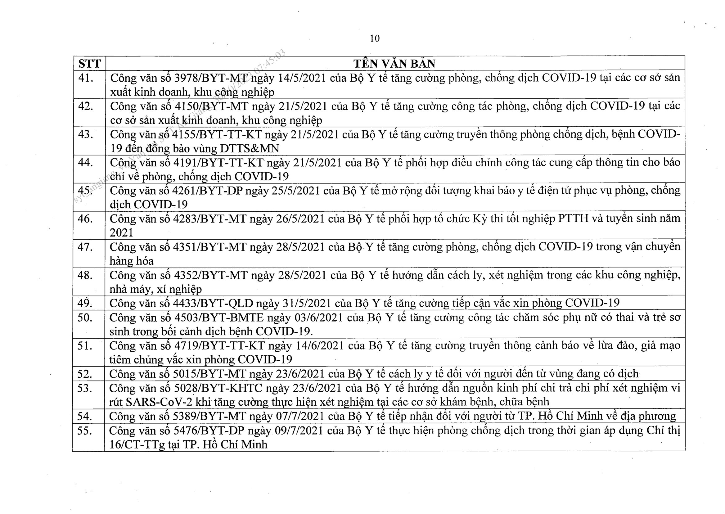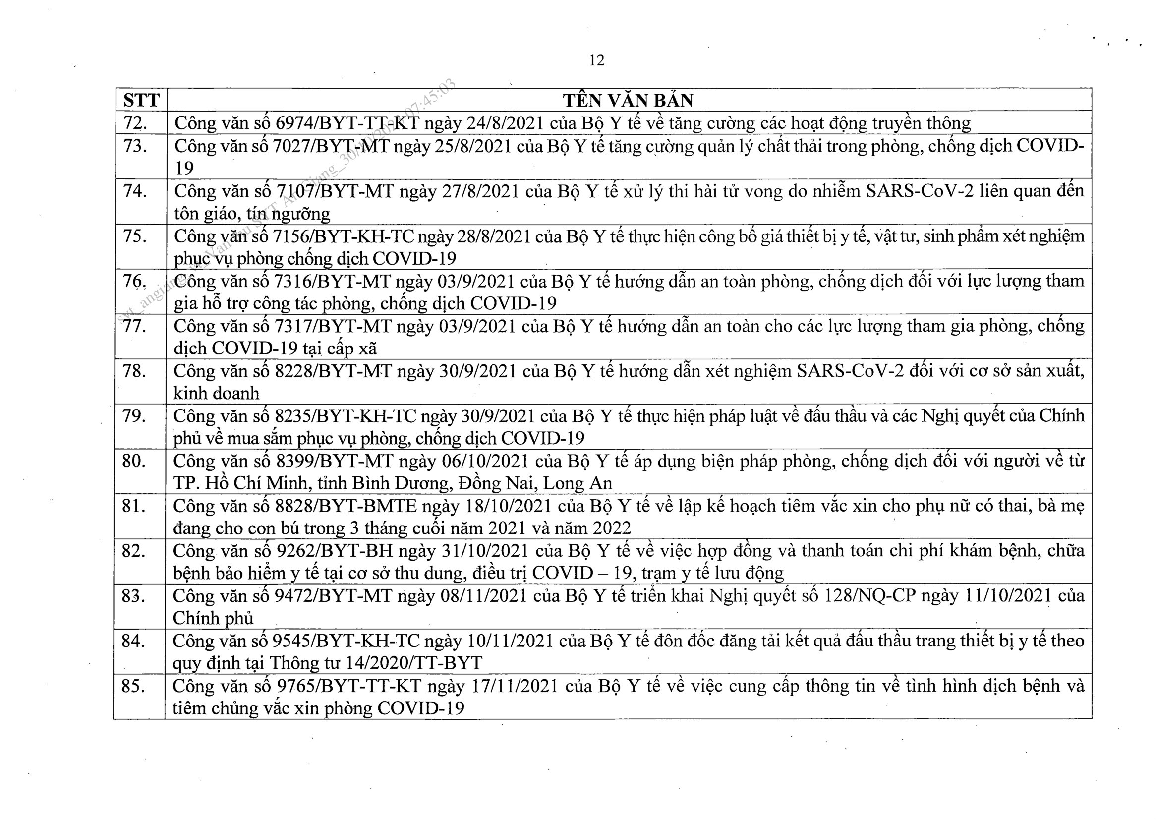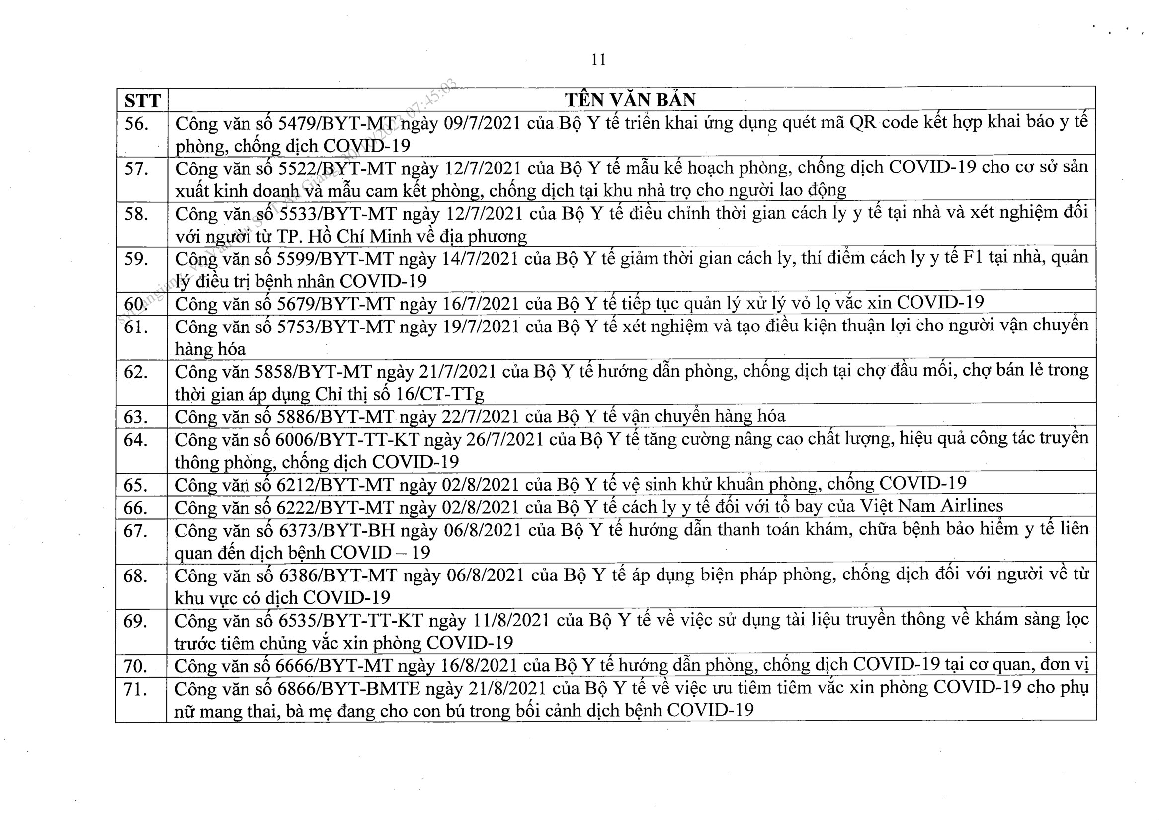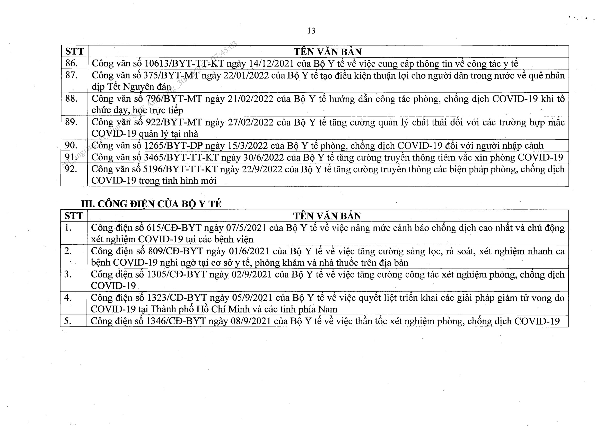Tại quyết định số 3983/QĐ-BYT do Thứ trưởng Bộ Y tế Nguyễn Thị Liên Hương lý ban hành, Bộ Y tế bãi bỏ một số văn bản phòng, chống dịch COVID-19 do Bộ Y tế ban hành, cụ thể gồm: 63 quyết định, 92 công văn và 5 công điện. Quyết định của Bộ Y tế có hiệu lực từ ngày 29/10/2023.
