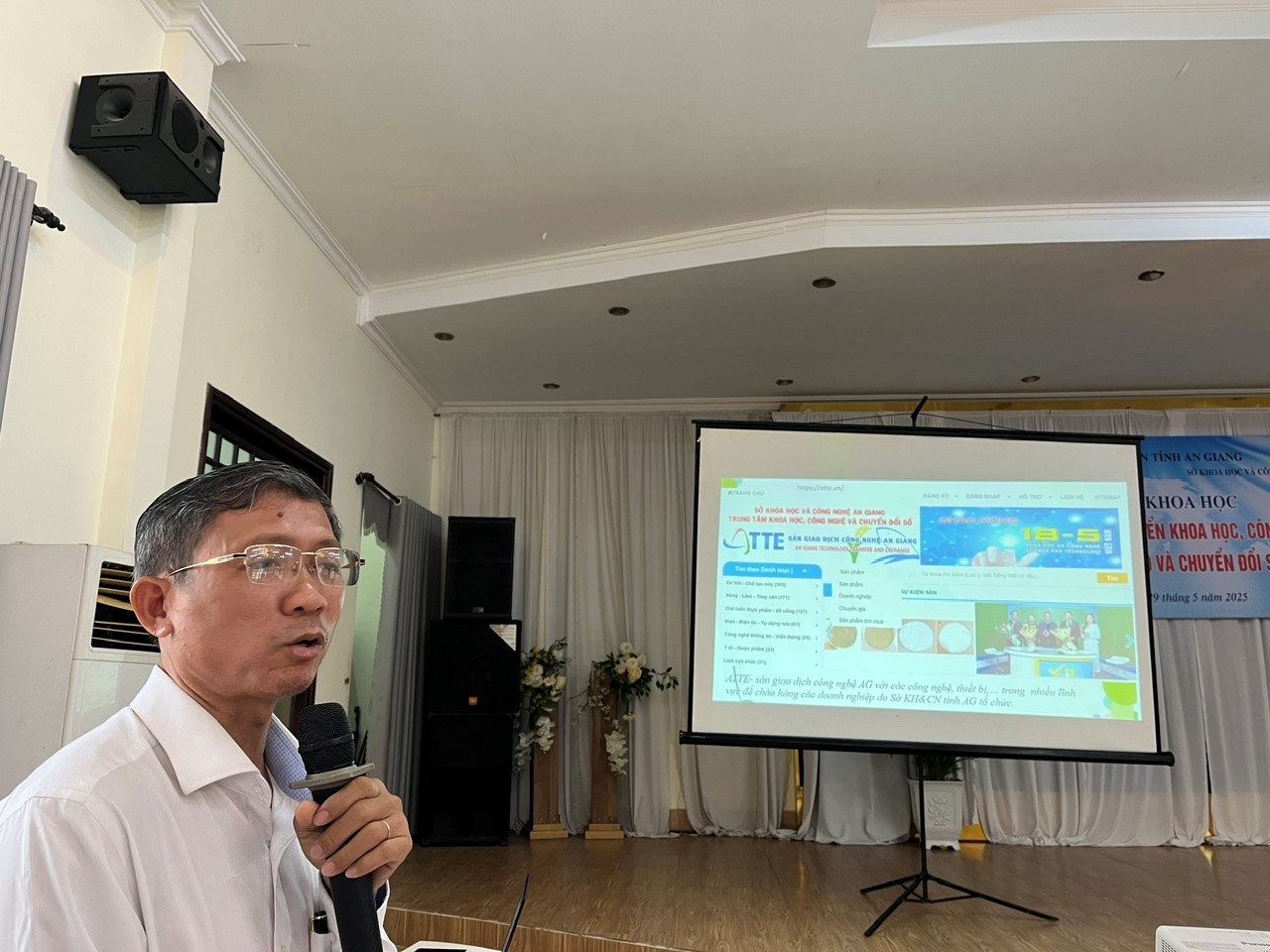 TS. Đoàn Ngọc Phả, Chủ tịch Liên hiệp các Hội KH&KT tỉnh AG và ThS. Phan Văn Kiến, Phó Giám đốc Sở Khoa học và Công nghệ tỉnh đồng chủ trì Hội thảo.