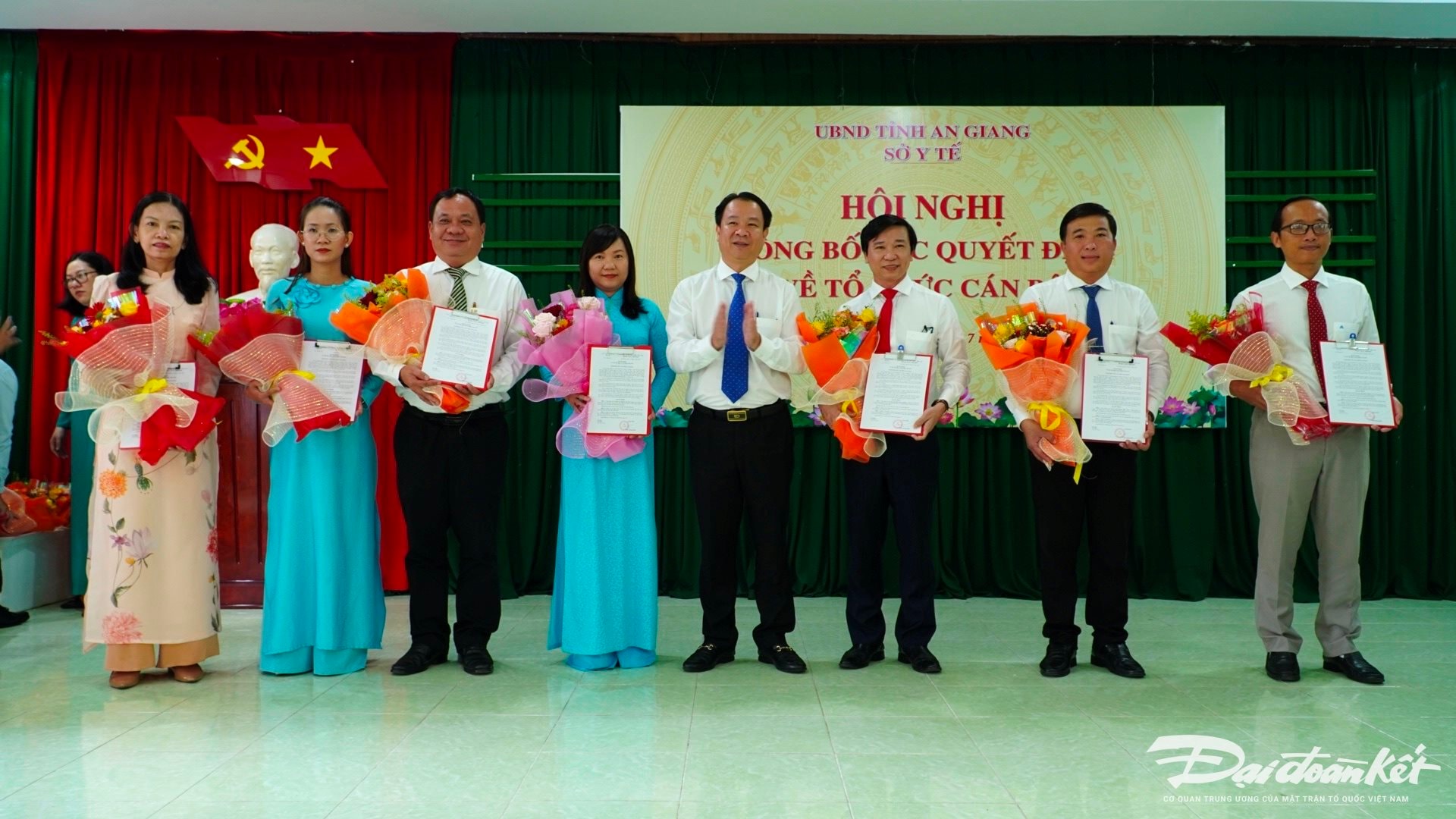 Tại hội nghị, Sở Y tế đã công bố 29 quyết định bổ nhiệm và điều động cán bộ giữ các chức vụ trưởng, phó phòng chuyên môn và lãnh đạo các đơn vị trực thuộc. Việc kiện toàn nhân sự lần này nhằm bảo đảm cơ cấu tổ chức hợp lý, phát huy tinh thần đoàn kết, tạo sự gắn kết giữa hai đơn vị sau sáp nhập, đồng thời đáp ứng yêu cầu phát triển của ngành Y tế tỉnh An Giang trong giai đoạn mới.